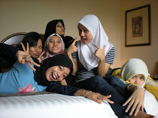 pas bergmbor...mady suh aku mandi dlu..sbb dorg nk suh aku make up dlu..huhuhu..mandi la aku dlm otel kude emas itew..hahahha..pas mandi je..akk huda merangkap make up artist kitrg pn da smpi..aku pn ape lg...so excited utk di make up..hahaha..biasela..bdk engineering mane pnh makeup2 mcm nie..kalu g klas pn juz pki bedak,lipstick n eyelinear je...ms ngh make over 2..
